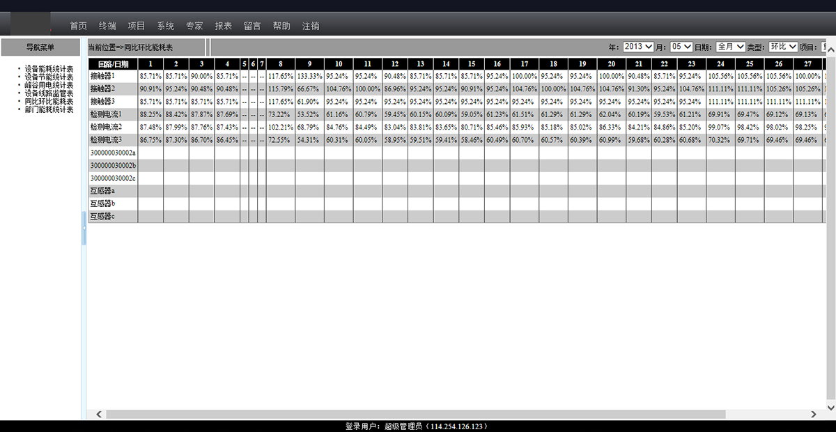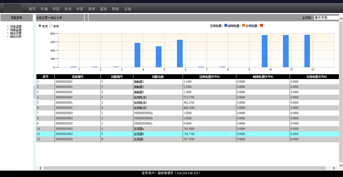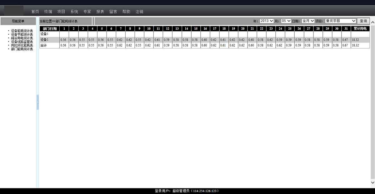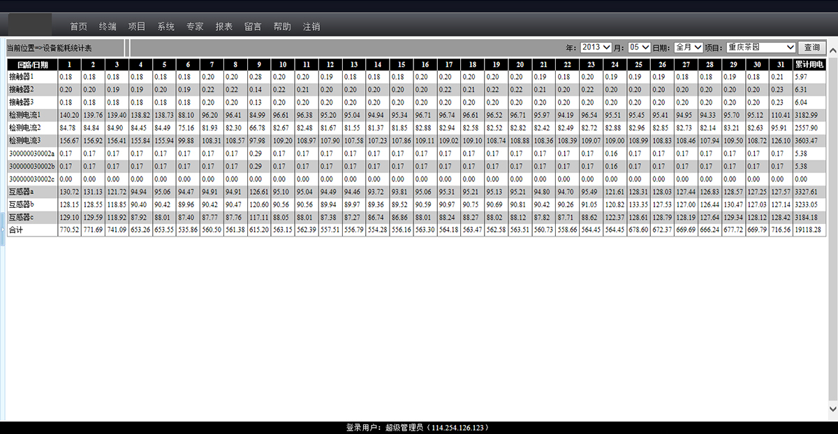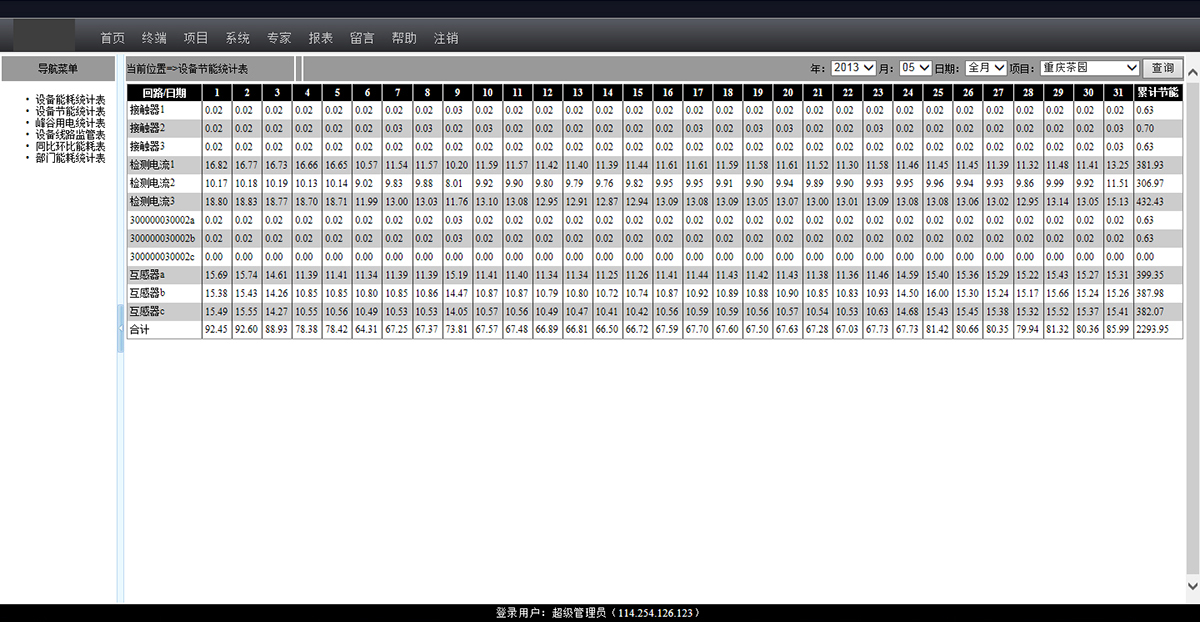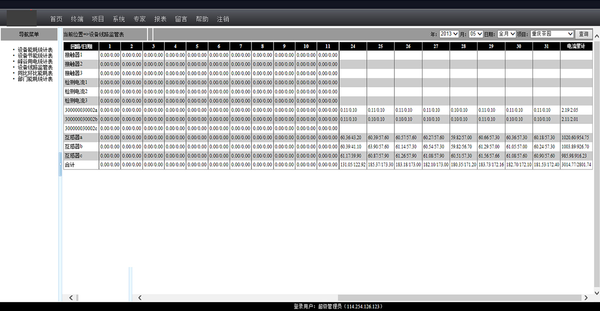 本系統(tǒng)可采集所監(jiān)管設(shè)備的所有用電參數(shù),并對(duì)設(shè)備進(jìn)行用電數(shù)據(jù)分析,做出電氣運(yùn)行的能耗報(bào)表(如下):
