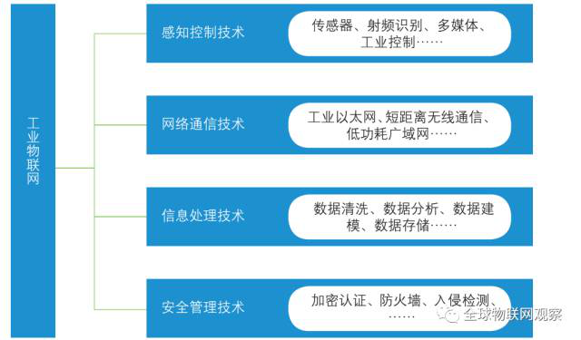 工業(yè)物聯(lián)網(wǎng)所需用到的關(guān)鍵技術(shù)主要有4大塊。