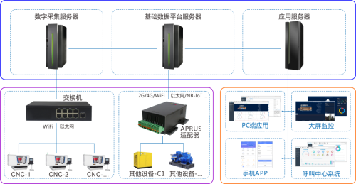 一方面監(jiān)控CNC及相關設備(傳感器、變頻器、智能儀表等)的生產(chǎn)運行情況,另一方面可以通過統(tǒng)計分析來提升生產(chǎn)效率。